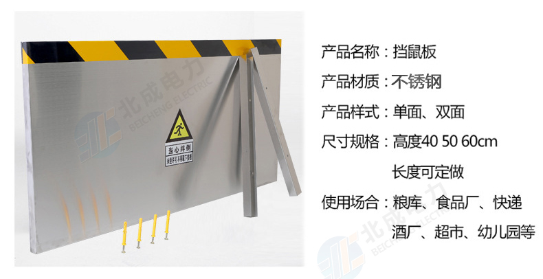 4.擋鼠板的高度常規(guī)尺寸為50厘米,寬度可根據(jù)客戶(hù)要求制作。